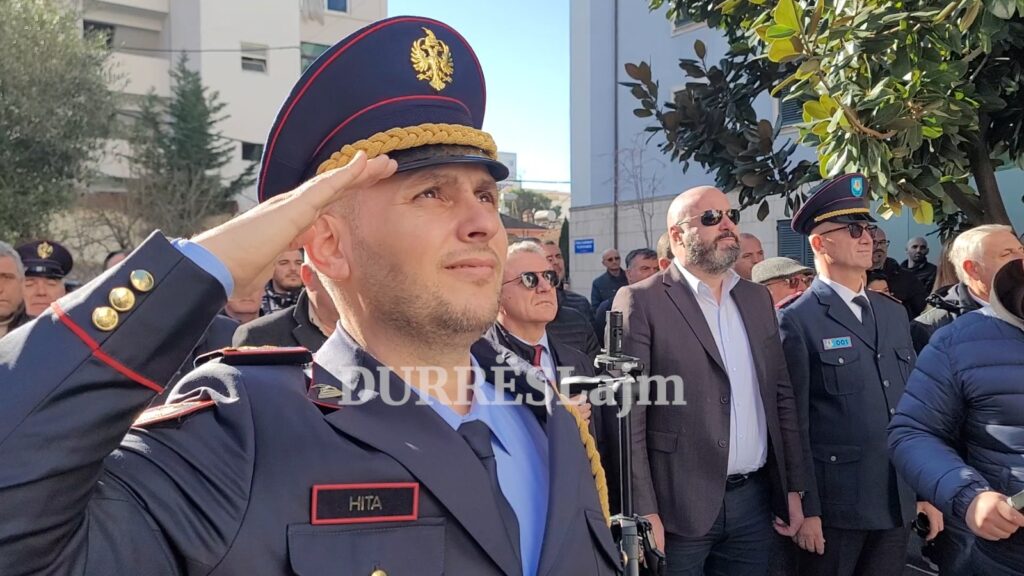 Ceremonia nisi me ngritjen e flamurit dhe himnin kombëtar për të vijuar më pas me fjalën e rastit të drejtorit të policisë Durrës, Skënder Hita.