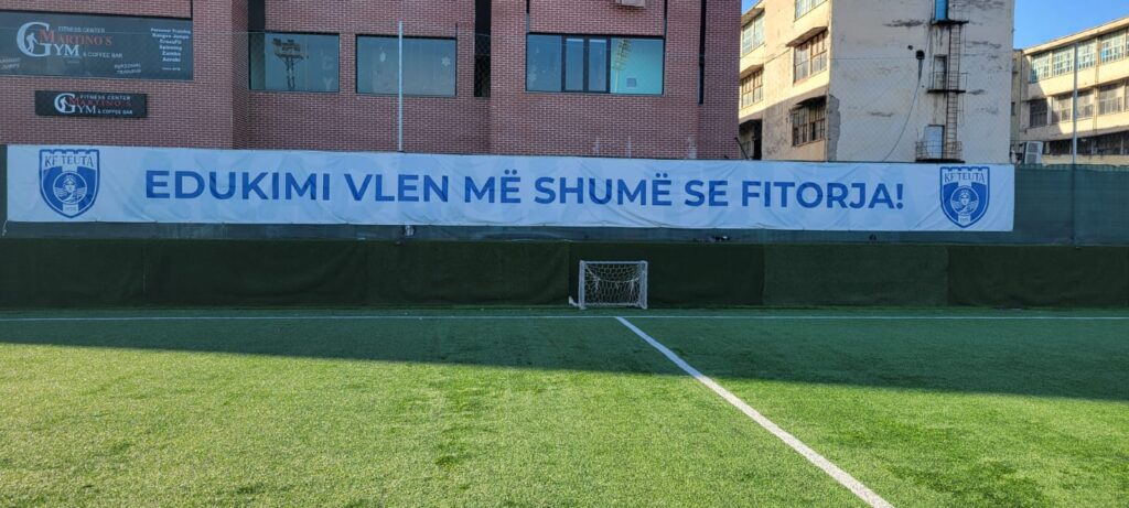 Kjo moto që është mjaft e dukshme në fushat stërvitore të ekipeve të moshave të Akademisë Teuta është një mesazh kuptimplotë për fëmijët dhe të rinjtë, që futbollit i dedikohen me përkushtim çdo ditë.