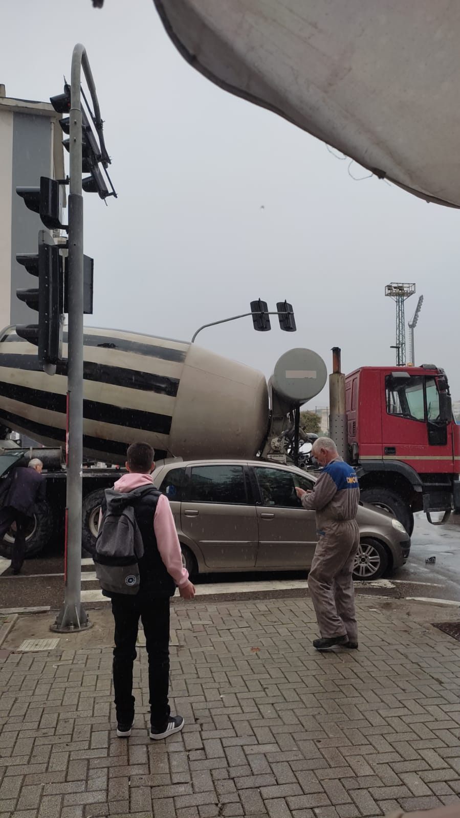Siç duket dhe në fotot e dërguara në redaksinë tonë, në ngjarje janë përfshirë një automjet tip “Lanca” dhe një betoniere, të cilat janë përplasur lehtë me njëra-tjetrën.