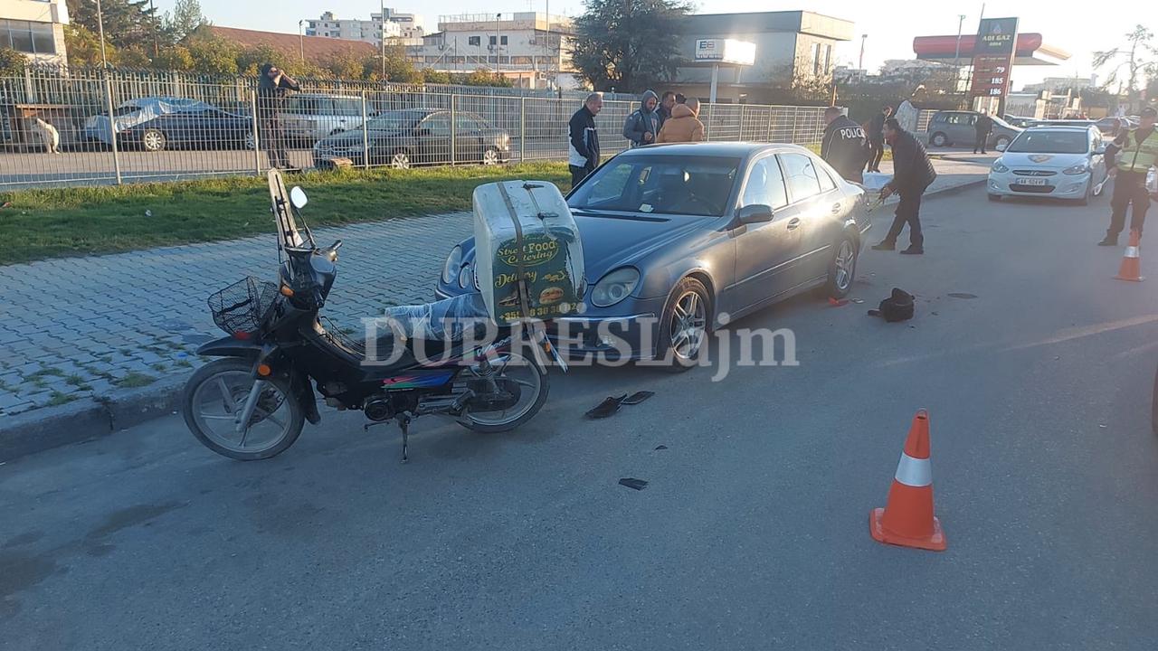 “DurrësLajm” ka mësuar se një motor që shpërndante pica është përplasur me një makinë të parkuar në anë të rrugës.