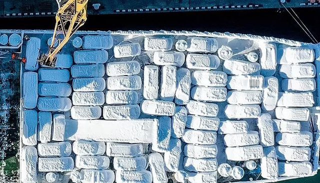 Turma njerëzish dolën për të parë makinat e akullta duke u hequr nga anija e regjistruar në Panama.