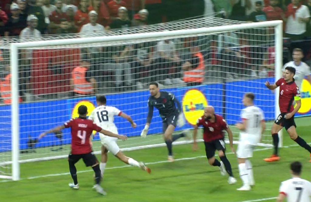 Futbollisti çek Mojmir Chytil tentoi të shënonte në portën e Shëqipërisë, por për shkak të shpejtësisë nuk arriti të godiste topin më këmbë, por zgjati dorë duke e futur topin në rrjet.