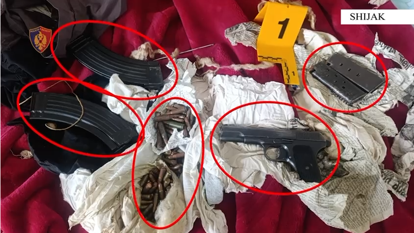 Nga kontrollet në banesën e tyre në Maminas, u gjetën 2 armë zjarri (kallashnikov dhe pistoletë), 4 karikatorë dhe 157 fishekë luftarak.