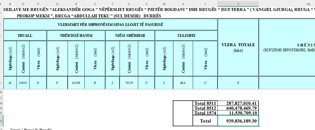 Në relacionin e parë, vlera e shpronësimeve ishte 867.776.164 lekë, por pas gabimit në mbledhje që ishte bërë nga grupi i punës, shuma u rrit me rreth 68.7 milionë lekë. Përpara mbledhjes së KB-së, përfaqësues nga familjet që preken nga prishjet protestuan para bashkisë, për të kundërshtuar vlerën e shpronësimeve.