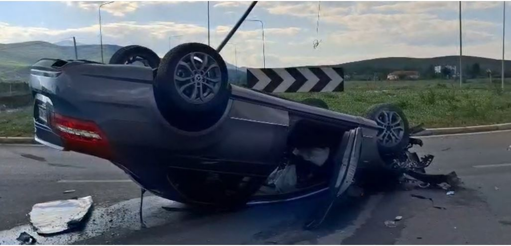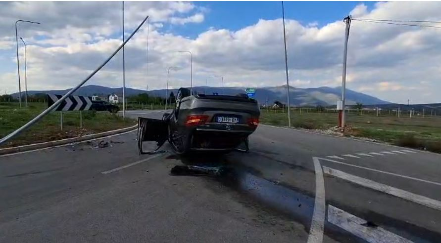 Sipas informacioneve paraprake, një automjet i vogël tip “Benz” ka dalë nga rruga dhe është përmbysur, duke shkaktuar dëmtime edhe në një shtyllë ndriçimi pranë rrethrrotullimit.