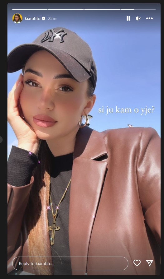 Në foton selfie Kiara ka përdorur dhe pyetjen: Si ju kam o yje, një shprehje kjo e moderatores së BBV, Arbana Osmani.