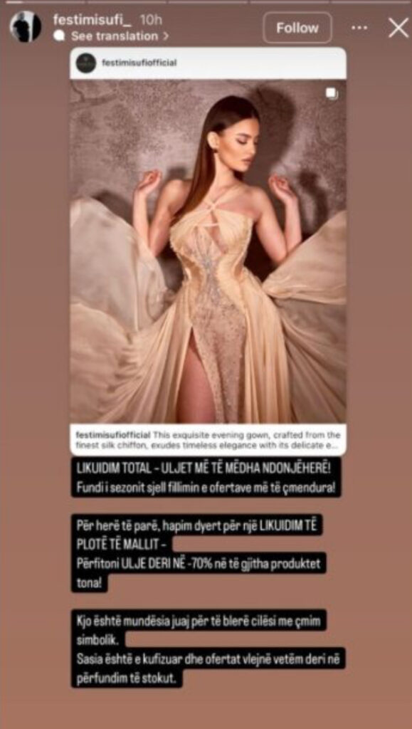 Festimi dhe Rina kanë postuar të dy njoftim mbi të rejat në kompani, likuidim të mallit me zbritje deri në 70% përpara nisjes së sezonit.