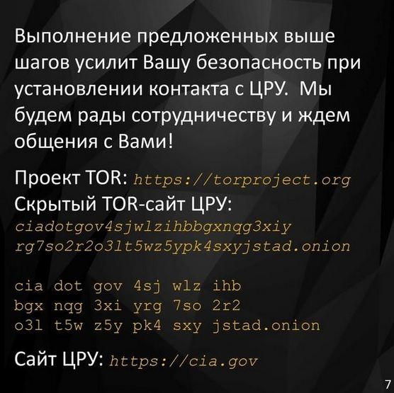 Ndërsa seksioni në rusisht shkruante: “Mënyra të sigurta për të vendosur komunikim virtual me CIA.
