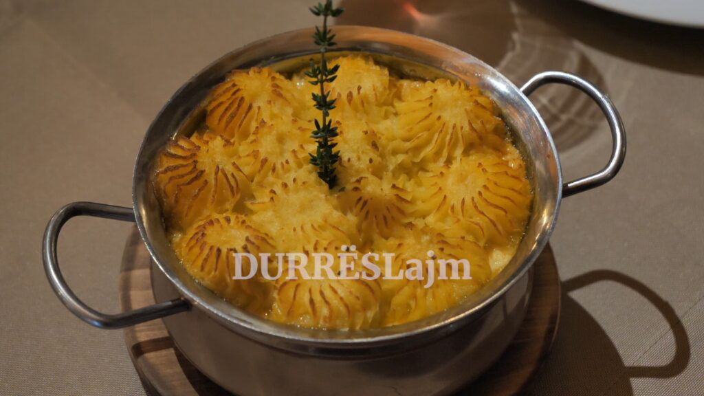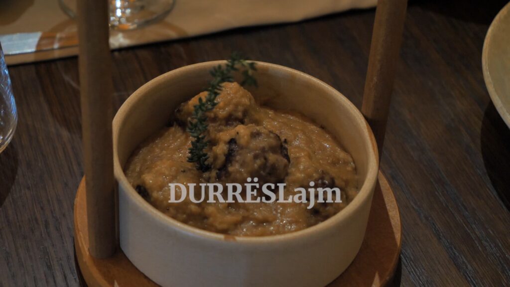 “Ky është byreku i bariut, që në fakt është risi dhe ka një shtrat me ragu viçi, ka mishin e qingjit, ka purenë e patates dhe djathin kaçkavall të zonës. Tek kjo pjata tjetër është trahanaja, që ne përgjithësisht e kemi përdorur për mëngjeset tona. Shefi jonë e ka kthyer në një pjatë të mirëfilltë dreke.