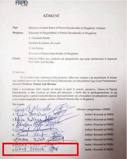 Mes të rinjve demokratë që kanë firmosur për referendumin është edhe Glauk Olldashi, djali i ish-ministrit demokrat Sokol Olldashi.