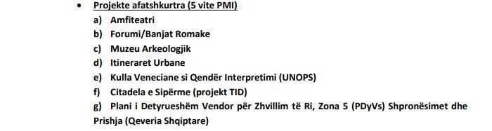 Sipas AADF-së, investimi në amfiteatër do të kapë vlerën 3.3 milionë dollarë, ndërsa ai tek Forumi Bizantin dhe Termat romake arrin 2.3 milionë dollarë. Ndërkohë, investimi tek Itineraret urbane kap vlerën 1.6 milionë dollarë.