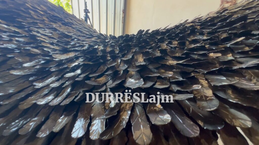 Me një durim të hekurt, siç është edhe metali që ai punon, mjeshtri Alla ka gdhendur një për një mbi 2 mijë pendë metalike që mbulojnë trupin dhe kokën e shpendit krenar të maleve tona.