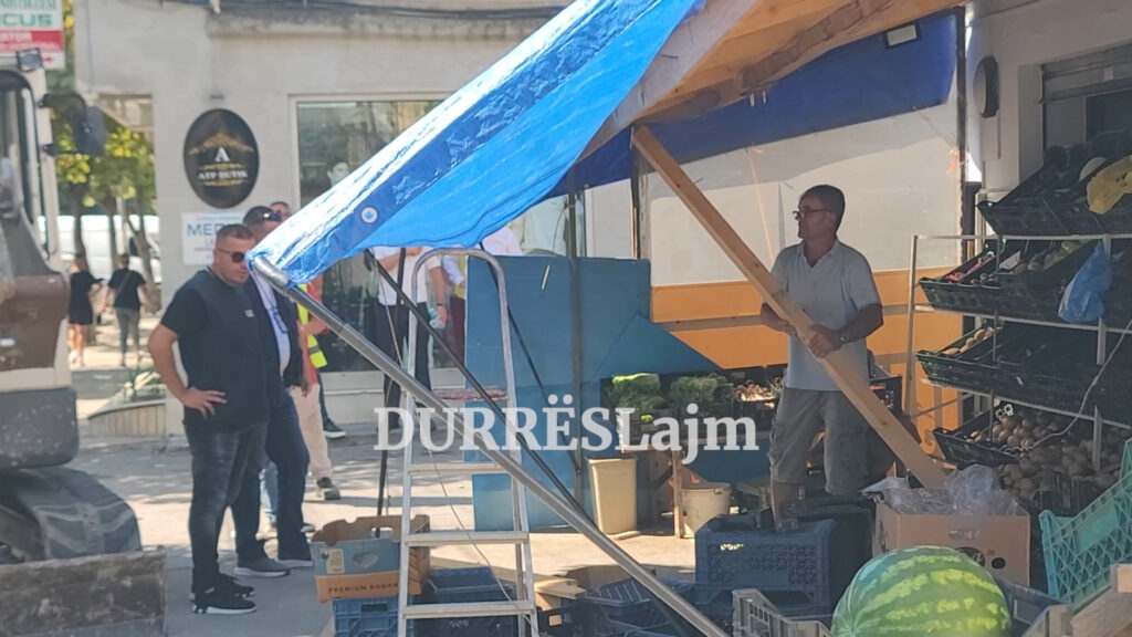 Tenda e një dyqani që tregton fruta – perimet ishte në fokusin e aksionit të sotëm për lirimin e hapësirave publike në qytetin e Durrësit. Përqendrimi i të gjitha strukturave lokale ishte tek ky dyqan, tendën e të cilit po e çmontonte vetë pronari i saj.