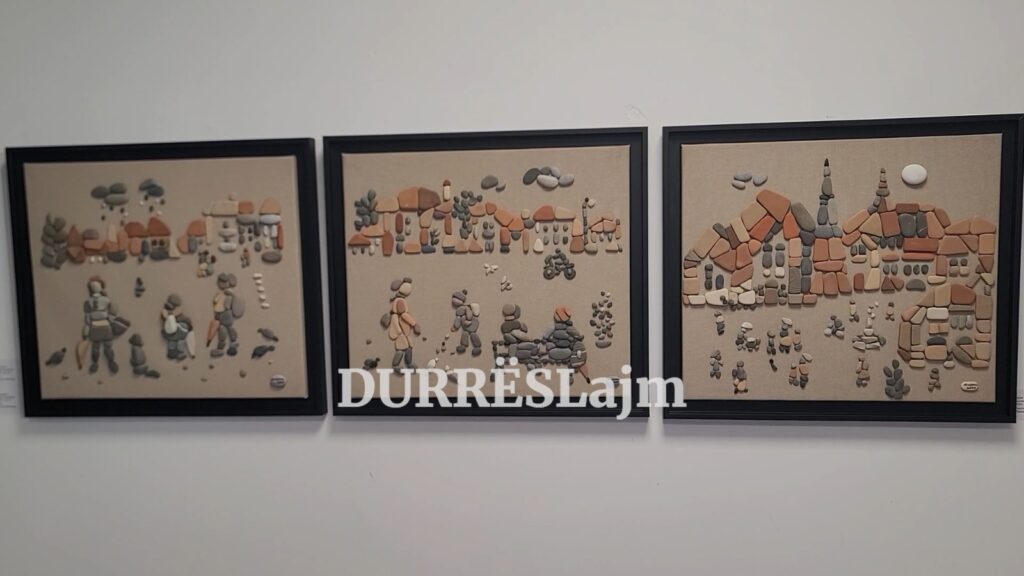 Në ndryshim, nga punimet e mëparshme, artistja Stasi vjen me një veçori krejt ndryshe, me tablo të punuara me guralecë deti.