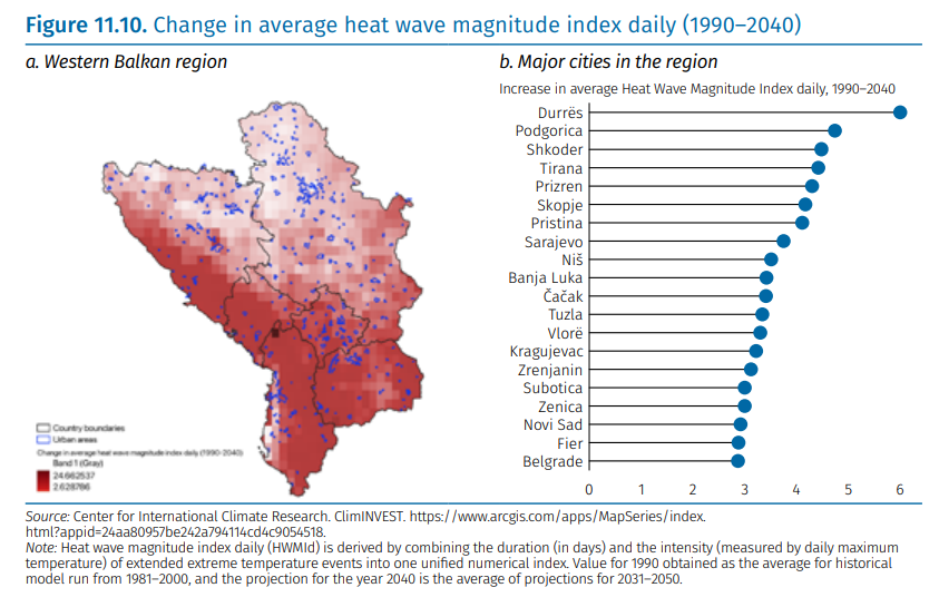 Ndërmjet viteve 1990 dhe 2040, Durrësi do të ketë rritjen më të lartë në indeksin e madhësisë së valës së nxehtësisë midis një kampioni qytetesh të mëdha në rajon.