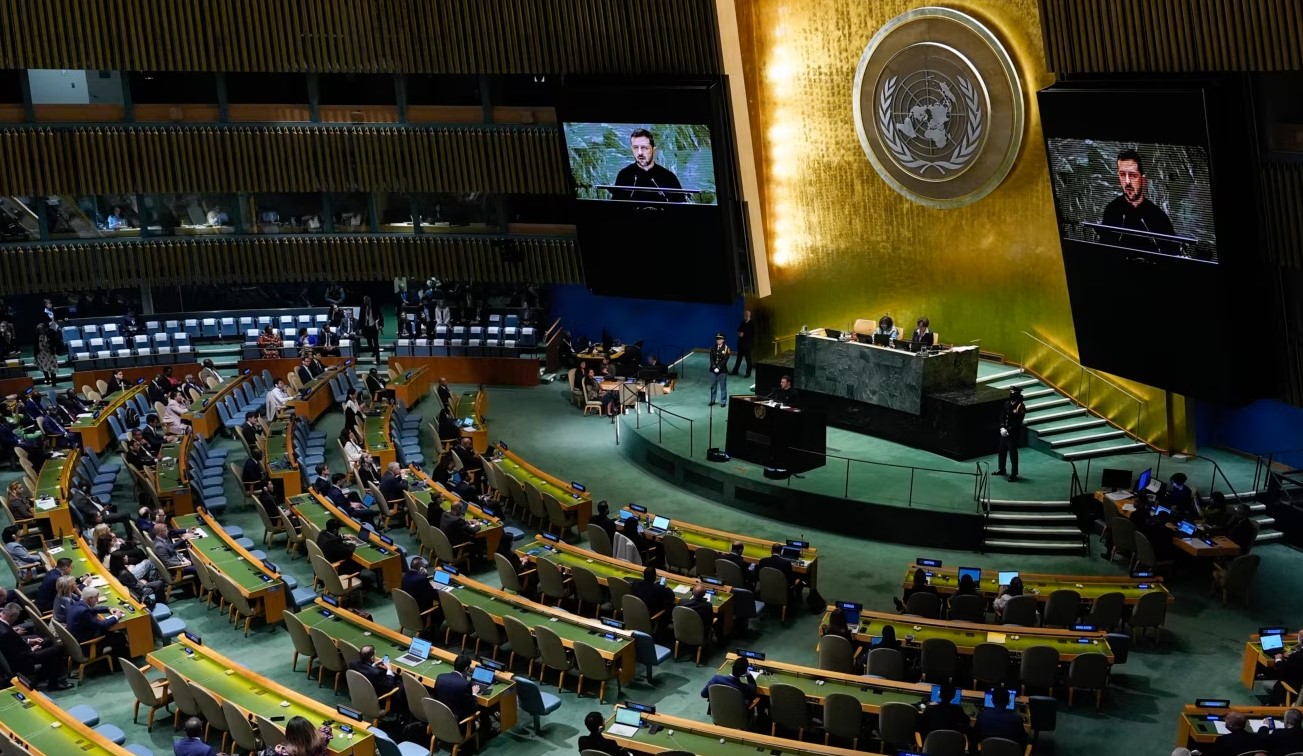 Projekt-rezoluta e Ukrainës thotë se rezolutat e mëparshme të miratuara nga Asambleja e Përgjithshme duhet të zbatohen plotësisht, duke përfshirë ato që bëjnë thirrje që Rusia të tërhiqet plotësisht nga kufijtë e njohur ndërkombëtarisht të Ukrainës.