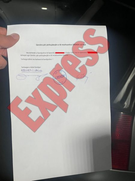 Dhëndri i saj ka prezantuar para gazetarëve dokumentin, të cilin e morën pasi bënë kërkesë që ajo të dalë nga aty.