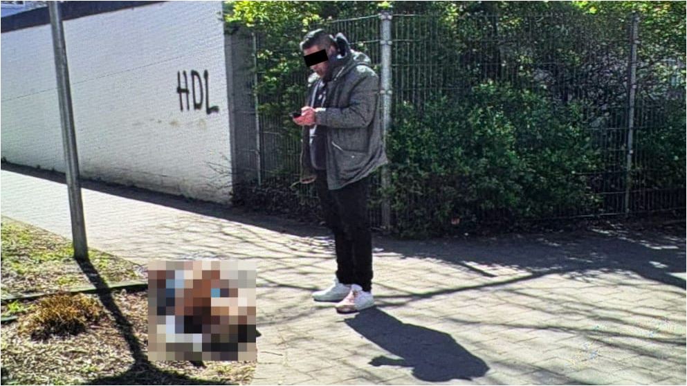 I dyshuari, pas krimit është ndaluar pranë viktimës së lënduar rëndë dhe ka kryer një telefonatë. Një dëshmitar e ka fotografuar këtë moment.