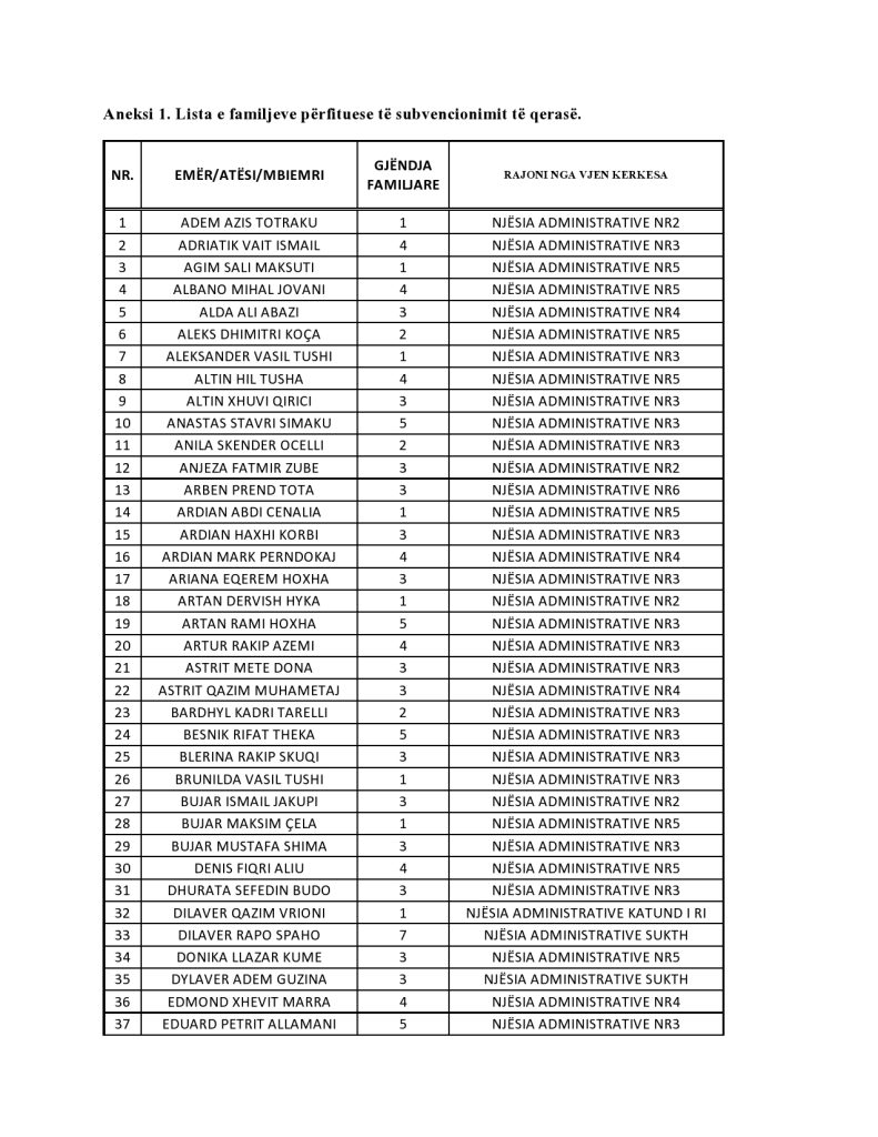 “DurrësLajm” po miraton më poshtë listën me emrat e 159 familjeve përfituese: