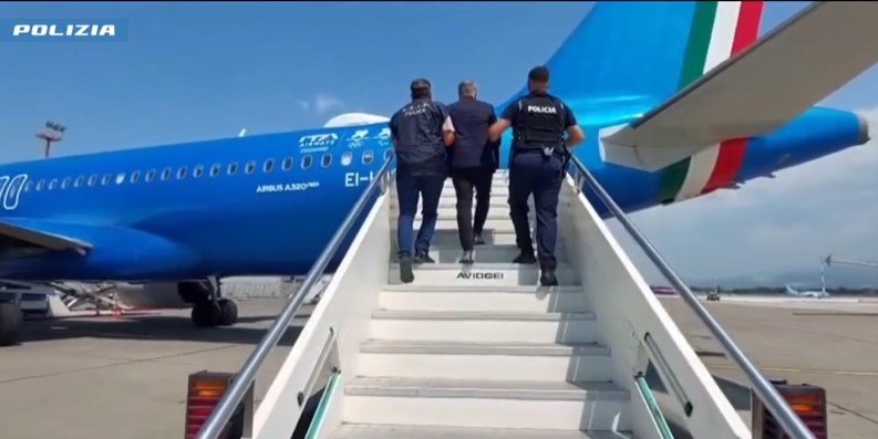 Një 56-vjeçar shqiptar, i dënuar nga Italia me 25 vjet burg, për vepra të rënda penale është ekstraduar nga Shqipëria drejt Italisë dhe ka mbërritur sot në Aeroportin Fiumicino të Romës.