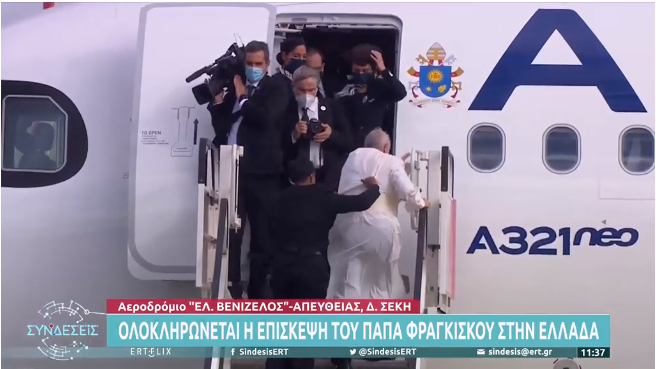 Papa Françesku ka pësuar një incident ndërsa ishte duke ngjitur shkallët e avionit në aeroportin “Eleftherios Venizelos”, në Athinë.