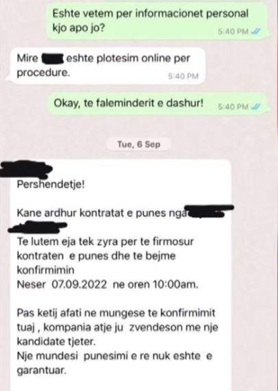 Gjithashtu vajzave u është kërkuar të paguajnë një tarifë prej 1000 eurosh për të nisur punën, ku agjencia shqiptare siç duket edhe nga pamjet ka ofruar mundësinë e pagesës me këste.