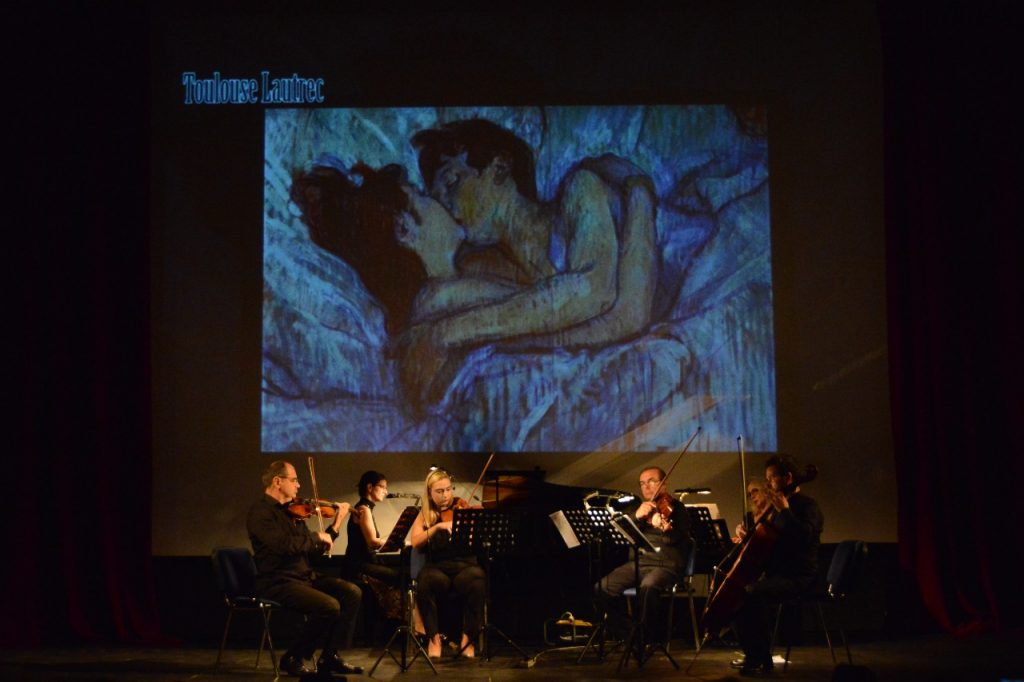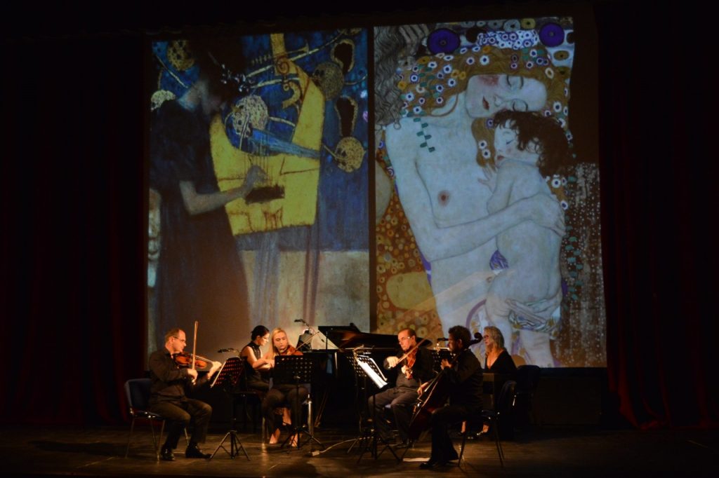 Pikturat e Klimt dhe jo vetëm, që ilustruan veprat muzikore të mbrëmjes, ia lanë vendin në fund një kolazhi muzikor, që shoqëroi montazhin fotografik të afro 30 pikturave më të njohura të artistëve botërorë me temën “Puthja e artë”.