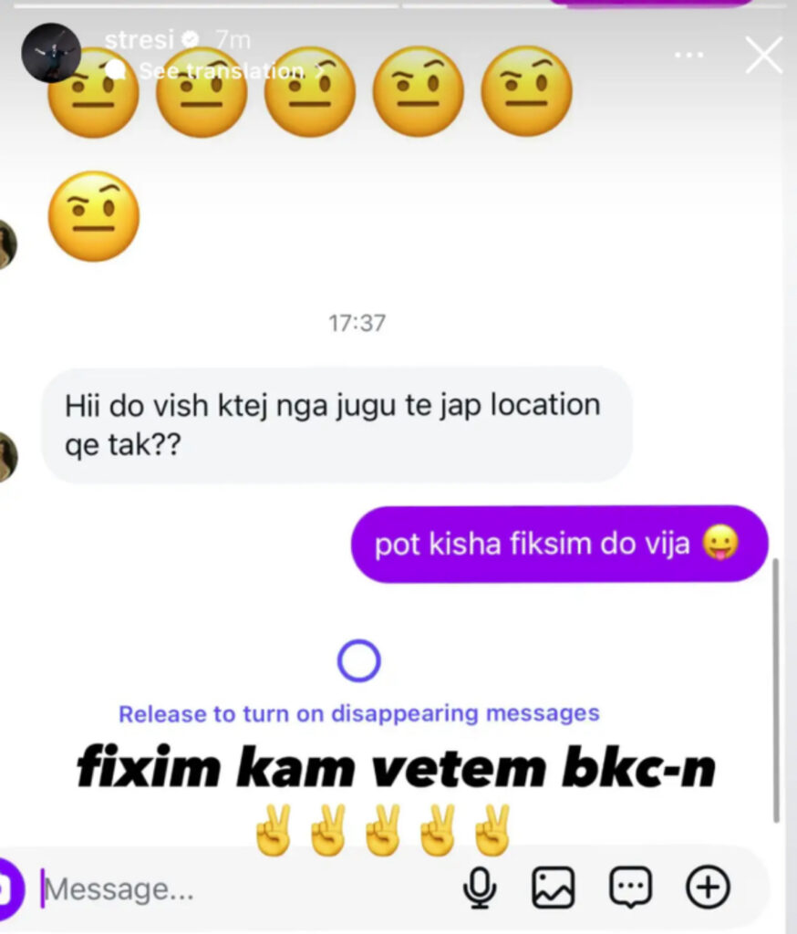 Stresi ka ndezur rrjetin me një story të fundit në Instagram, ku ndan një bisedë private me dikë që i propozon një takim në jug. Përgjigjja e tij?