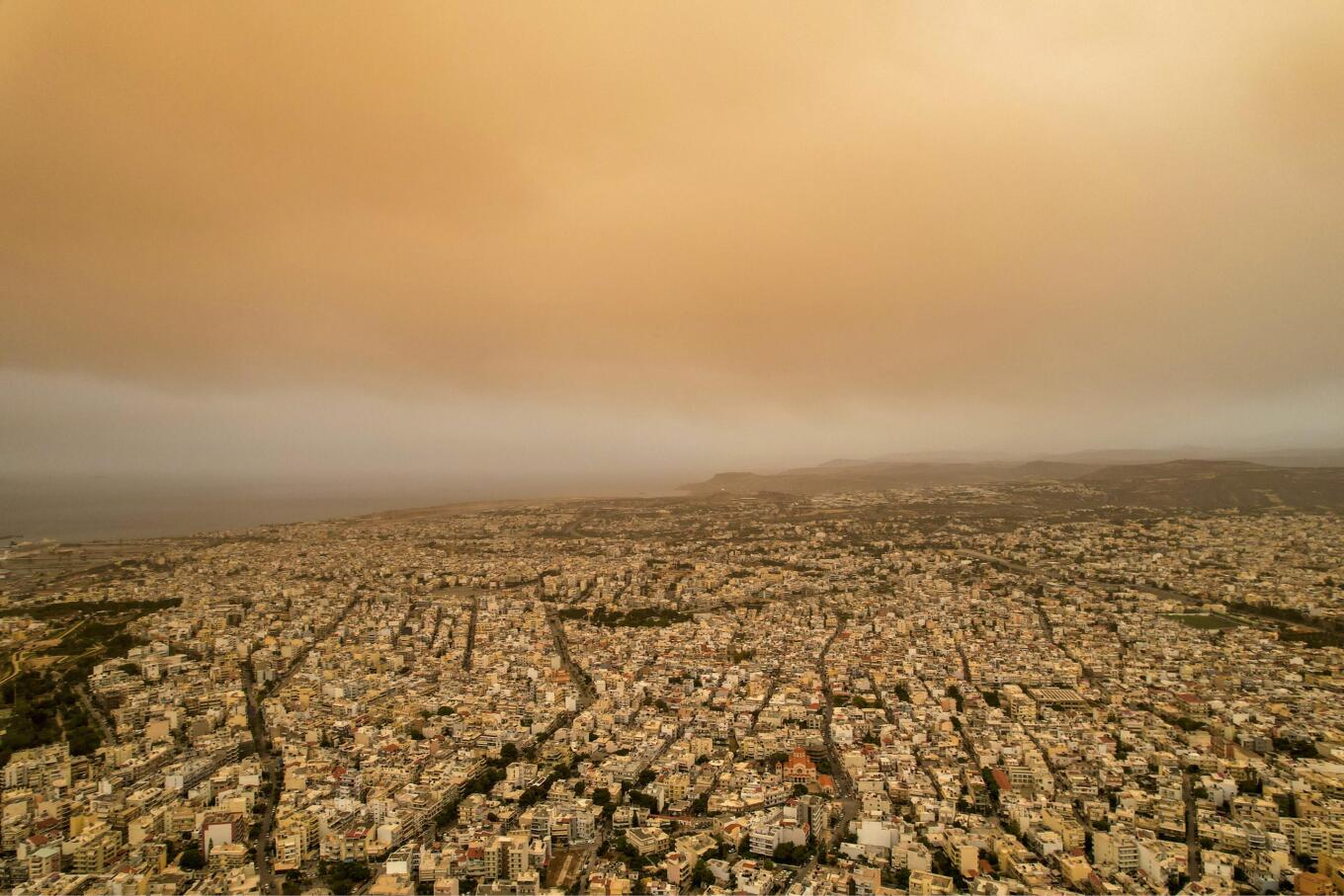 Siç shihet edhe në foto, pluhuri mbulon thuajse të gjitha zonat e Kretës. E kombinuar me temperatura të arta, por edhe shi, është krijuar një atmosferë mbytëse për të gjithë banorët.