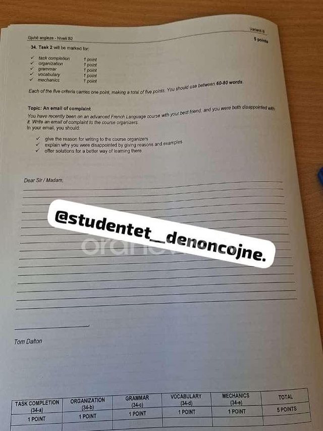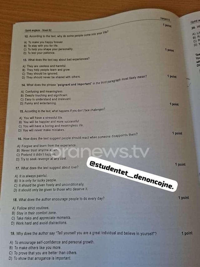Teza e anglishtes është publikuar në rrjete sociale 30 minuta pas nisjes së testit të Gjuhës së Huaj.