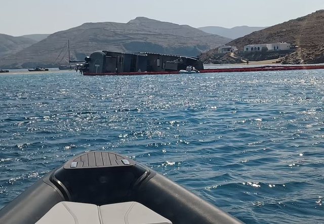 Anija, e cila mendohet të jetë në pronësi të një biznesmeni zviceran, por që lundronte nën një flamur britanik, u fundos pasi u përplas me shkëmbinjtë vetëm 49 metra larg gjirit piktoresk Kolona në ishullin Kythnos.