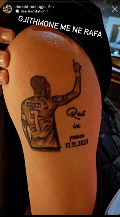 Tanimë Donald Mëllugja, shoku i tij i ekipit ka përjetësuar kujtimin e sulmuesit duke e bërë tatuazh.
