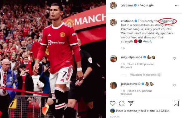 Janë të shumtë ata që kanë vënë re se fraza e shkruar nga portugezi në anglisht ka një gabim: “Beginning – “fillim”- është bërë “beggining”.Kjo gafë e re në rrjetet sociale ka bërë të shpërthejnë tifozët, që nuk kanë humbur rast për t’u tallur me gabimin e Cristiano Ronaldo-s.