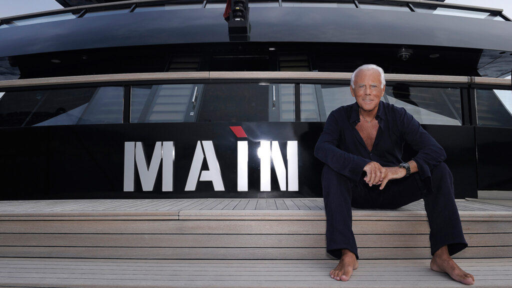 Giorgio Armani nuk ka vendosur vetëm të projektojë veshje. Stilisti italian ka zbatuar vizionin e tij edhe në det, duke krijuar “Main”, një superjaht 65 metra të ndërtuar nga kantieri italian Codecasa. Ndryshe nga shumica e anijeve luksoze, “Main” bie në sy për trupin e tij ngjyrë grafiti të errët dhe linjat e ulëta, të cilat i japin një pamje diskrete por të dallueshme.