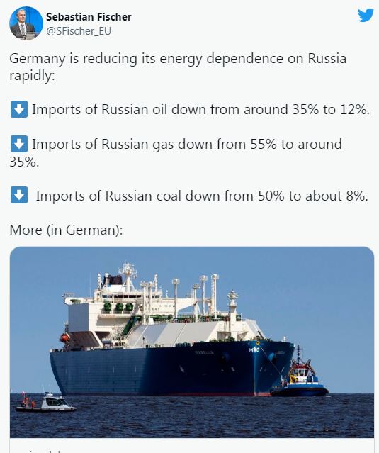 Zëdhënësi i Gjermanisë në BE, Sebastian Fischer, tha se Berlini po reduktonte “me shpejtësi” varësinë e tij energjetike nga Rusia.