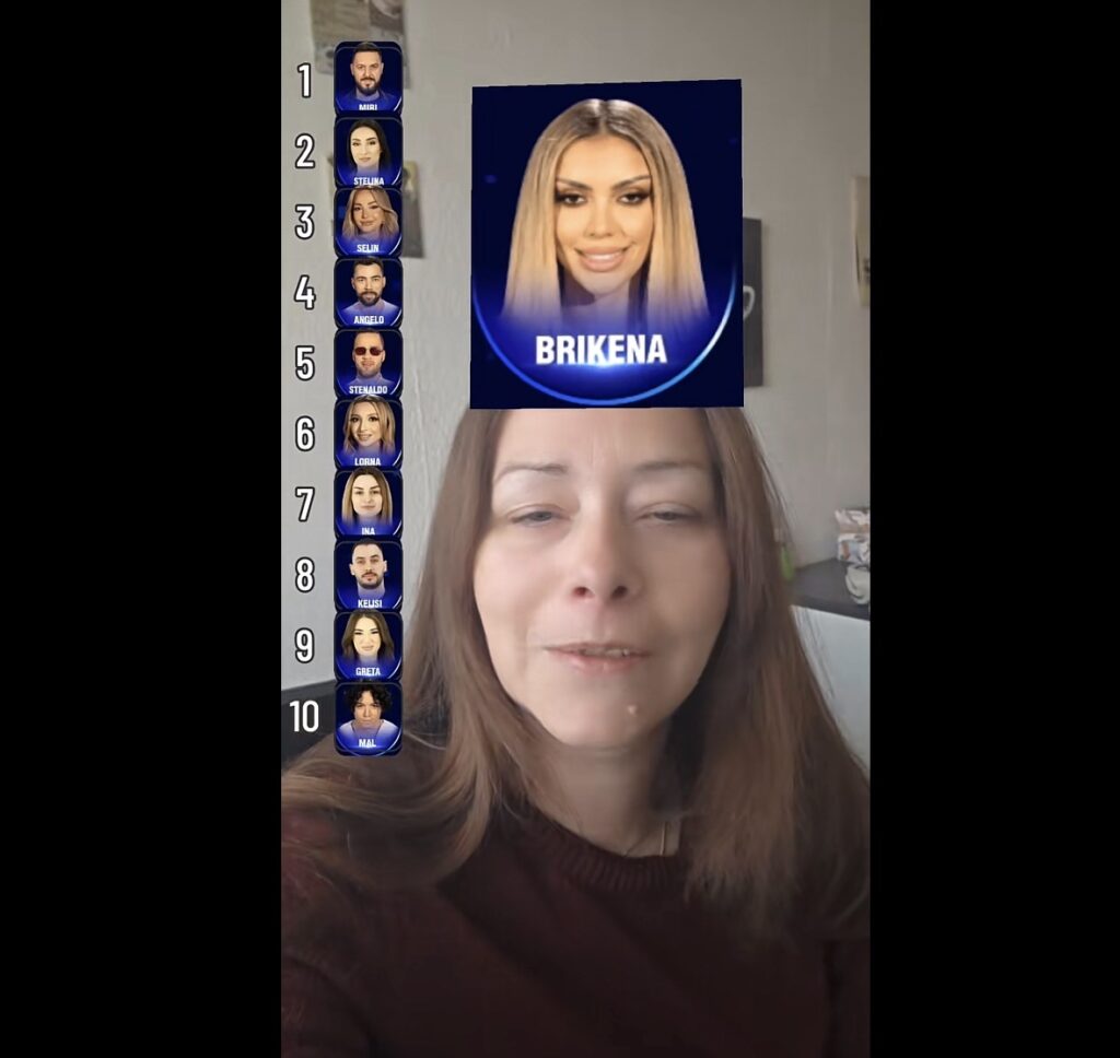 Ajo e rendit Mirin të parin, duke thënë: Miri normalisht sepse është burri im, është njishi. Të dytën ajo ka renditur Stelinën, ndërsa të tretën Selin.