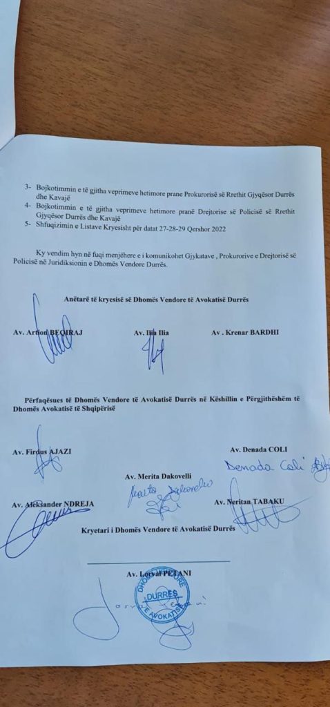 Në mbledhjene e sotme avokatët e Durrësit në mënyrë unanime kanë vendosur: