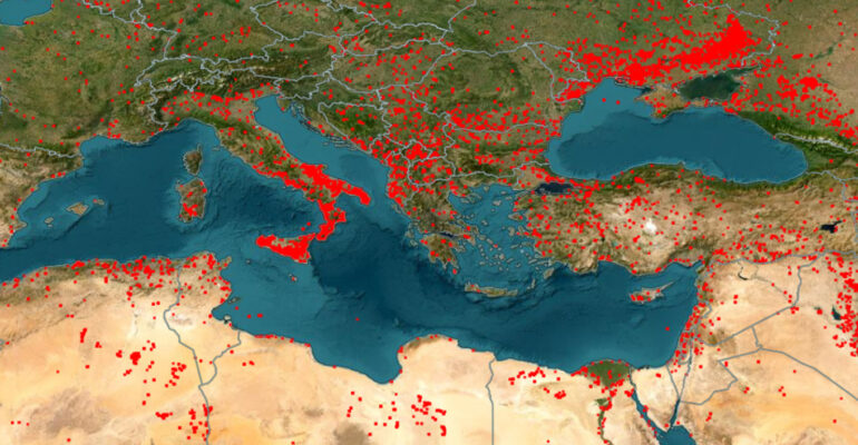 Nga Greqia në Spanjë dhe nga Franca jugore në Qipro, sistemi satelitor i NASA-s po regjistron shpërthimet e zjarreve në të gjithë Mesdheun.