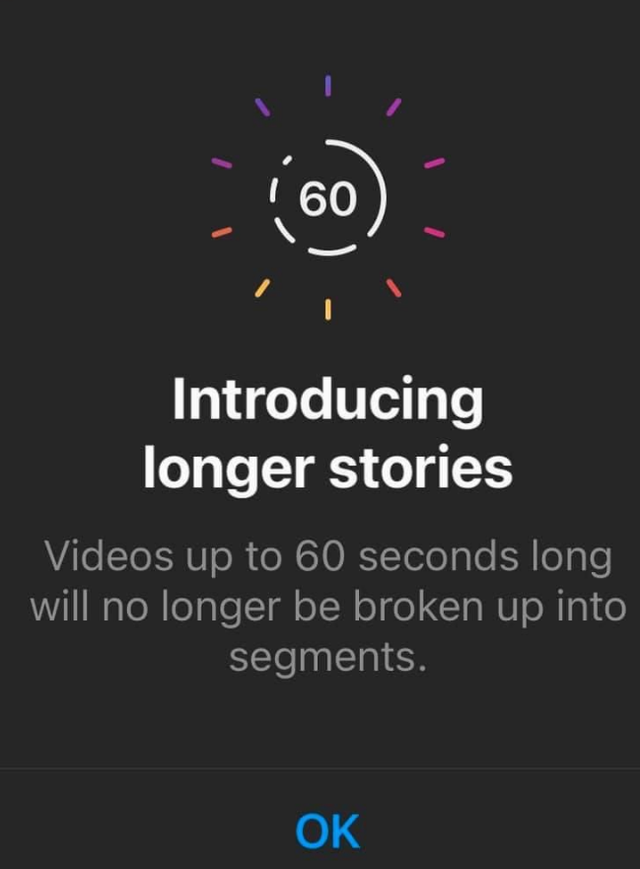 Që prej lançimit të Stories në Instagram, rrjeti social i ka ndarë ato në segmente prej jo më shumë se 15 sekondash. Megjithatë, ky kufi duket se ka marrë fund me përditësimin e ri.