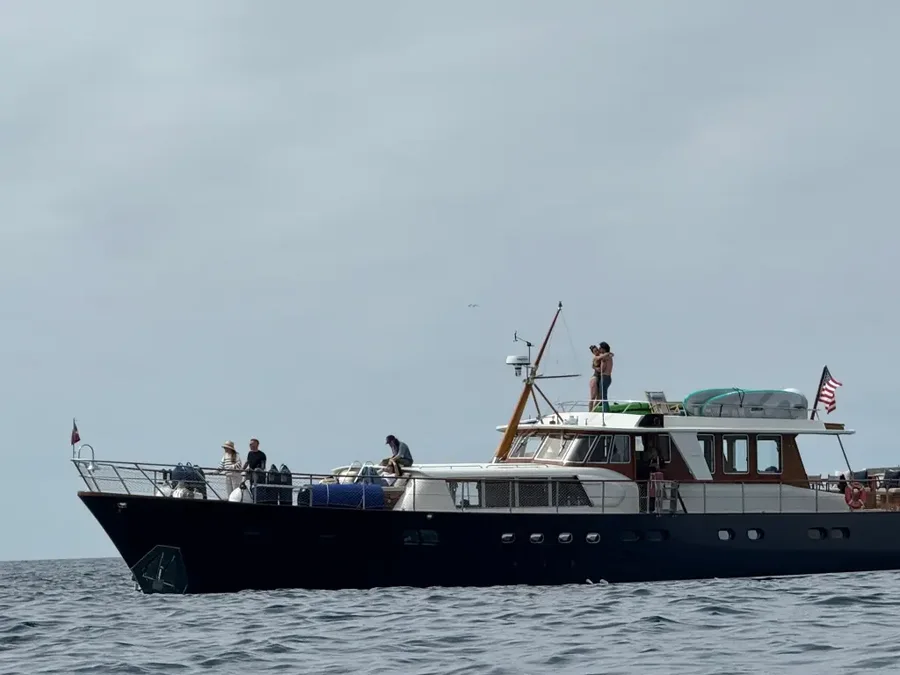 Burime tregojnë se ata kaluan një kohë të mirë mbi dekun e sipërm të jahtit, ku Trudeau përqafonte këngëtaren me pasion. Sipas një dëshmitari, ata u afruan pranë një varke të vogël për të parë balenat dhe filluan të putheshin, duke bërë që identiteti i Trudeau të kuptohej vetëm nga tatuazhi në krahun e tij.
