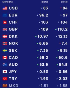 Ndërsa paundi britanik blihet me 109 lekë dhe shitet me 110.2 lekë.