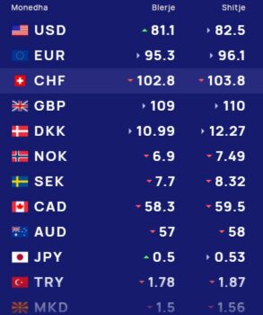 Ndërsa paundi britanik do blihet me 109 lekë dhe do shitet me 110 lekë.