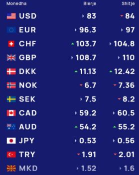 Sot, në tregun e këmbimit valutor, një dollar amerikan blihet me 83 lekë dhe shitet me 84 lekë.