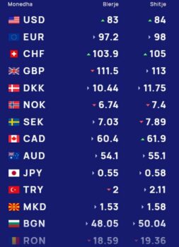 Ndërsa paundi britanik do të blihet me 111.5 lekë dhe do të shitet me 113 lekë.