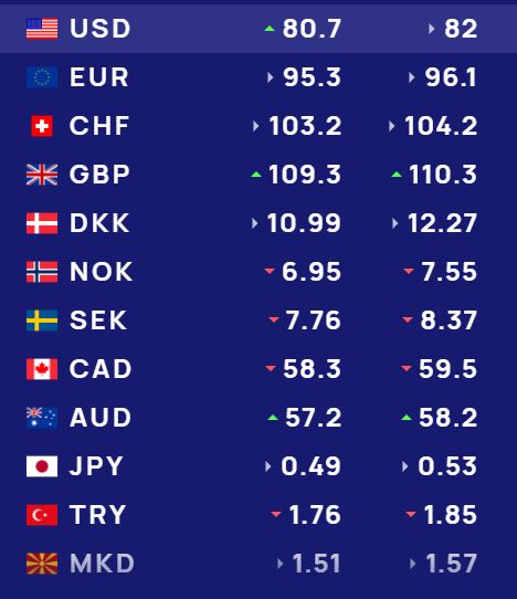 Ndërsa paundi britanik do blihet me 109.3 lekë dhe do shitet me 110.3 lekë.