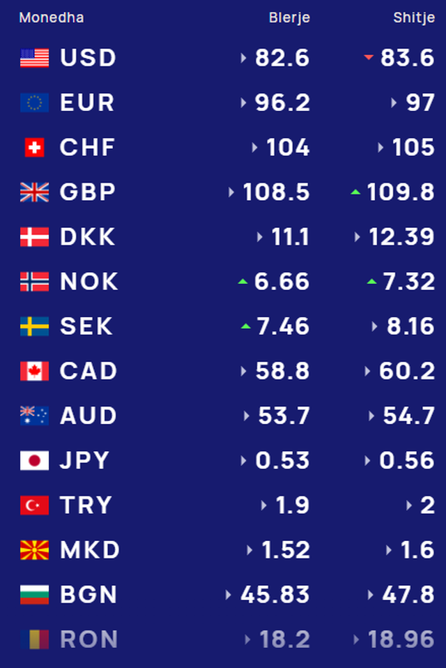 Ndërsa paundi britanik blihet me 108.5 lekë dhe shitet me 109.8 lekë.