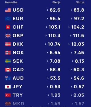 Ndërsa paundi britanik blihet me 110.3 lekë dhe shitet me 111.6 lekë.