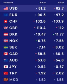 Ndërsa paundi britanik blihet me 110.4 lekë dhe shitet me 112 lekë.