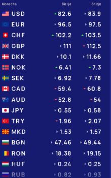 Ndërsa paundi britanik do të blihet me 111 lekë dhe do të shitet me 112.5 lekë.