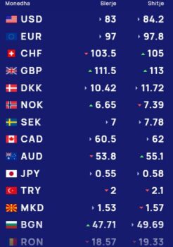 Euro do të blihet me 97 lekë dhe do të shitet me 97.8 lekë.